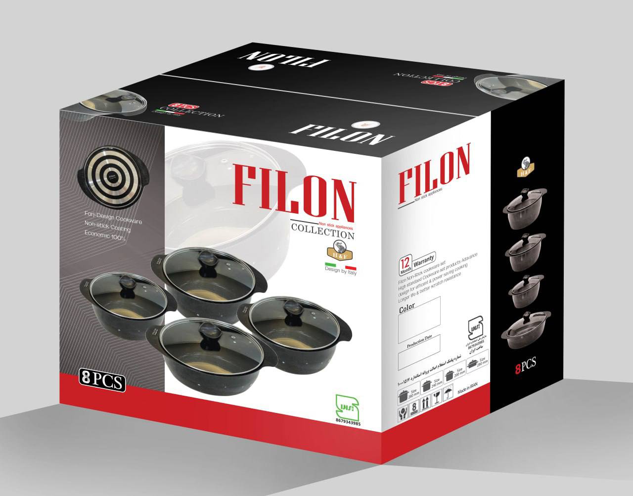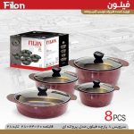 سرویس قابلمه 8 پارچه برند فیلون با پوشش گرانیت ضدخش و دسته های نسوز از کیفیت بالایی برخوردار هست